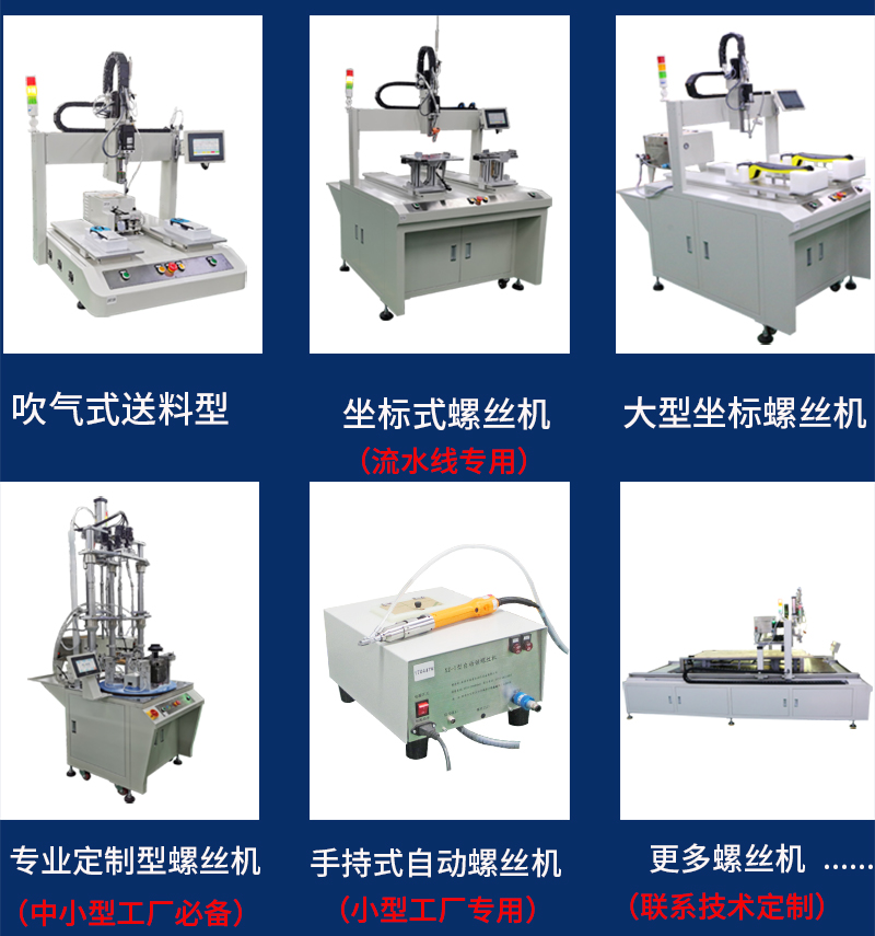 吸附式自動(dòng)鎖螺絲機(jī)采用吸附式鎖付系統(tǒng),搭配螺絲排列機(jī),采用逐點(diǎn)鎖付方式,通過(guò)程序可對(duì)每個(gè)螺絲孔位的X\Y\Z三個(gè)維度來(lái)定位,可根據(jù)不同產(chǎn)品螺絲數(shù)量及位置設(shè)定不同鎖付方案,并可儲(chǔ)存多套方案,滿(mǎn)足多產(chǎn)品螺絲緊固工作。富仕達(dá)自動(dòng)鎖螺絲機(jī)尺寸可根據(jù)產(chǎn)品尺寸大小及生產(chǎn)線情況來(lái)設(shè)計(jì),定制真正好用的自動(dòng)鎖螺絲設(shè)備。
