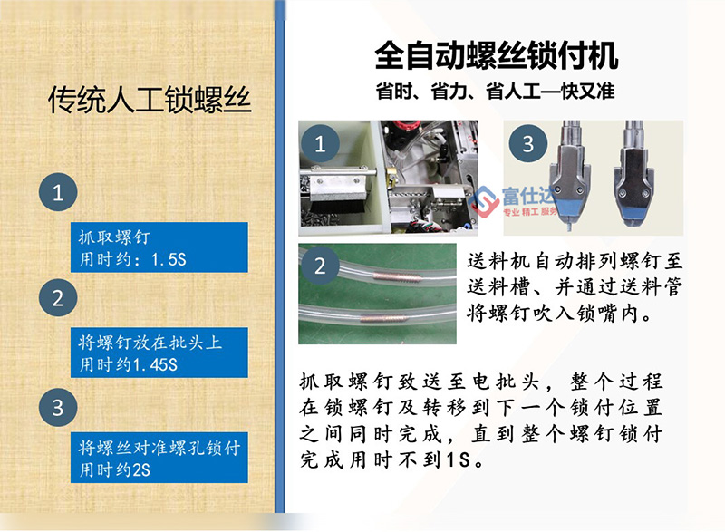 深圳市富仕達(dá)自動(dòng)化設(shè)備有限公司是國(guó)內(nèi)領(lǐng)先的以自動(dòng)鎖螺絲設(shè)備為核心的自動(dòng)化設(shè)備制造商,堅(jiān)持以客戶需求為中心,定制自動(dòng)化鎖螺絲方案,已有超過(guò)4000家企業(yè)采用富仕達(dá)定制的自動(dòng)鎖螺絲設(shè)備實(shí)現(xiàn)“機(jī)器換人”,節(jié)省大量人力成本。
